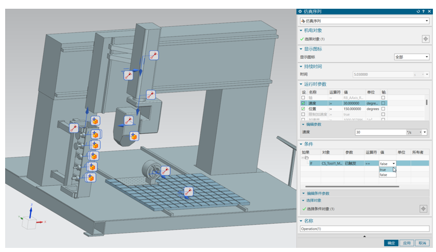機電系統動作的執行是基于時間或狀態變化,即動作的時序和條件。而仿真序列即可用來創建基于時間和基于事件的行為,從而讓機電功能模型在序列的控制下實現系統連續有序的運行。