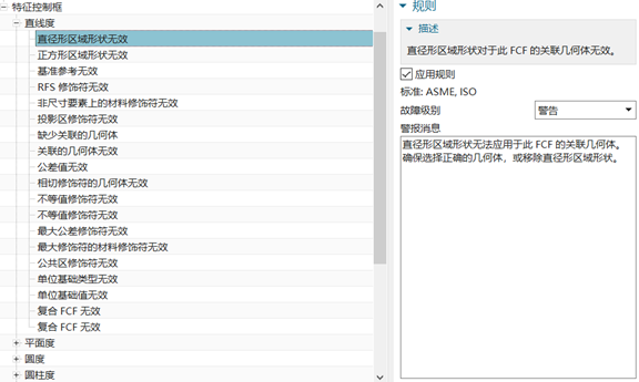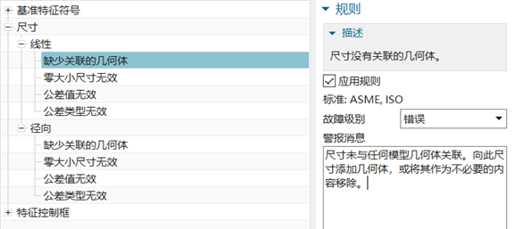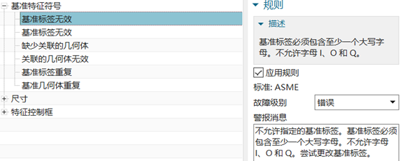 基準檢查的項如下圖所示,選中每一個規則后,即可在右邊看到檢查項檢查的具體內容,以及定義故障級別。