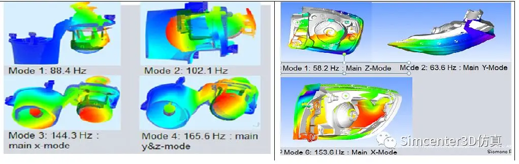 車燈作為汽車部件,使用NX Nastran結構分析功能,對車燈進行模態分析,同時,在NXNastran中,我們可以分析帶接觸的模態,能夠更加準確的分析車燈的固有頻率,從而更加準確的判定車燈結構是否會跟外界激勵頻率發生共振。