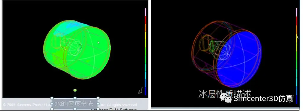 車燈在寒冷的溫度下,車燈外面會結冰,通過Simcenter 3D的高級熱流耦合分析,能夠模擬前透鏡上冰融化的過程,通過冰完全融化的總時間來對冰熔化的行為進行判定,在分析過程中,薄的冰層可以通過帶改變狀態屬性的殼單元來模擬,冰單元和透光鏡單元之間采用熱固直接耦合來建立熱傳導,通過分析,我們能夠得到冰的性質、冰的餾分和冰層的蒸發時間等。
